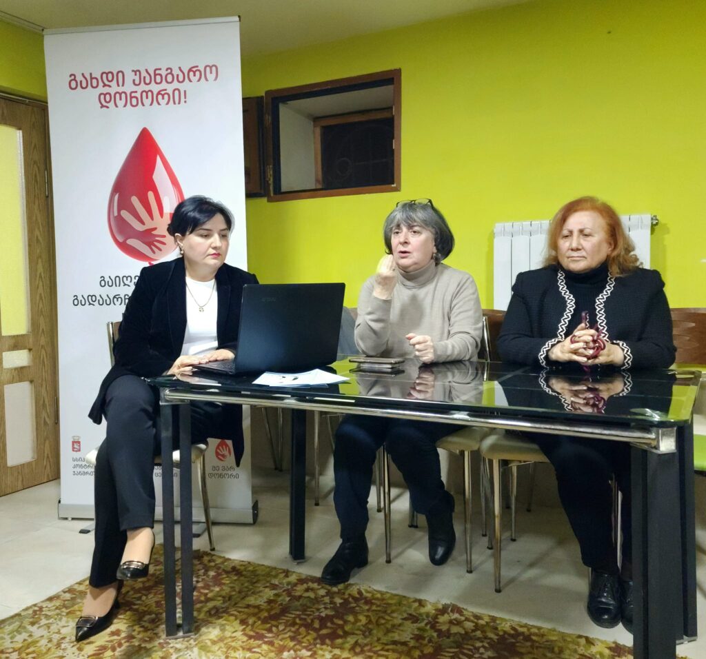 შეხვედრის მონაწილეებს სისხლის უანგარო დონაციის მნიშვნელობის, საჭიროებისა და სისხლის ახალი სისტემის შესახებ ჰემატოლოგ-ტრანფუზიოლოგი მაია ბეროძე ესაუბრა.