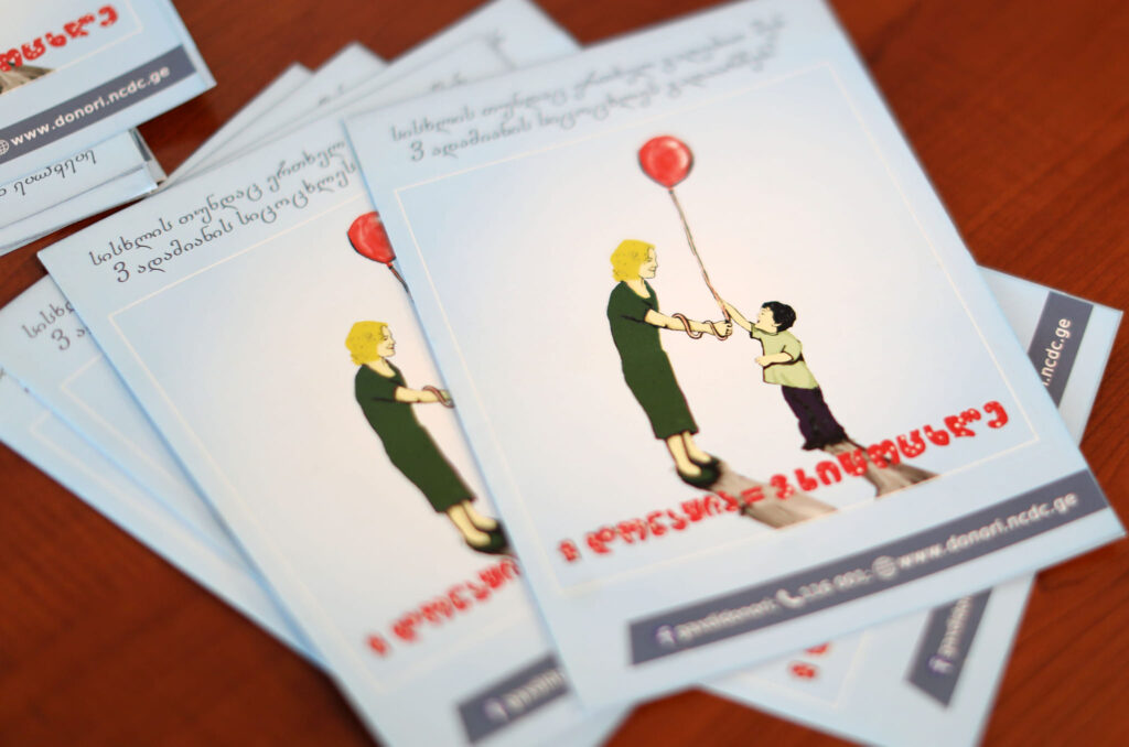 აქციაზე მოსულ მოსახლეობას დაავადებათა კონტროლის ეროვნული ცენტრის მიერ შემუშავებული სისხლის უანგარო დონაციის საპოპულარიზაციო ბროშურები დაურიგდა.