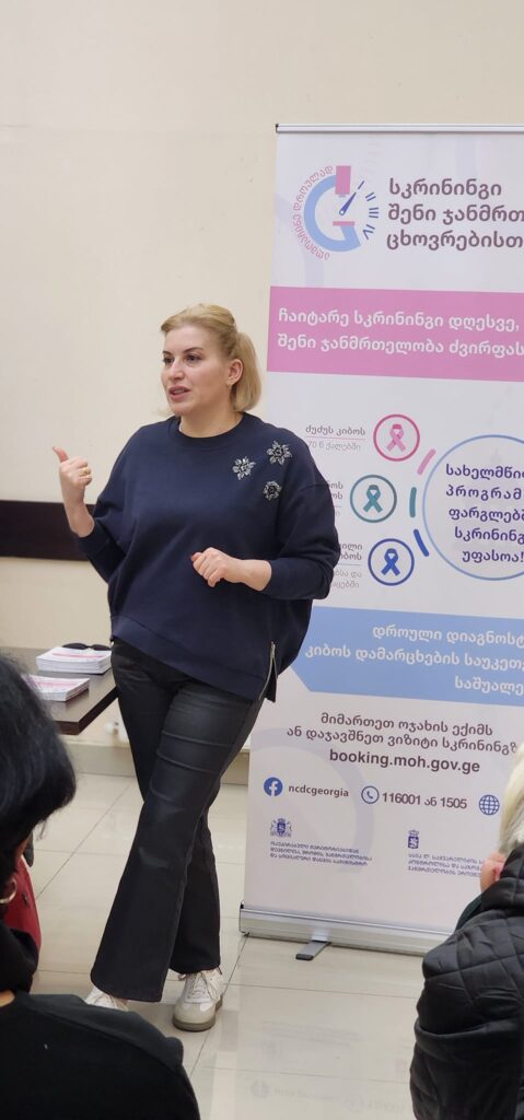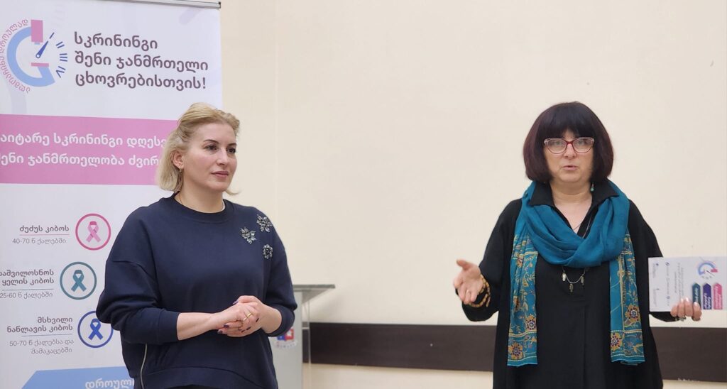 საინფორმაციო შეხვედრა და სკრინინგ აქცია თელავში დაავადებათა კონტროლისა და საზოგადოებრივი ჯანმრთელობის ეროვნული ცენტრის, კიბოს სკრინინგის საკითხებზე მოსახლეობის საგანმანათლებლო და ცნობიერების ამაღლების ეროვნული კამპანიის ეგიდით,