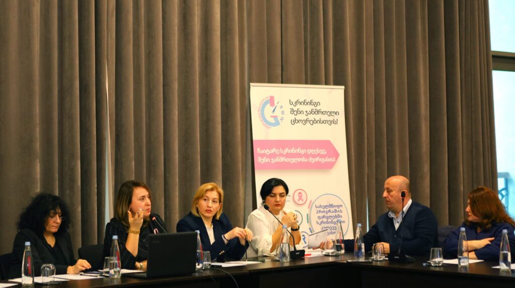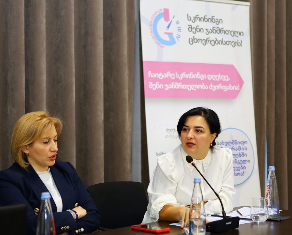 კიბოს სკრინინგის სახელმწიფო პროგრამის, აღნიშნული პროგრამის მოცვის მაჩვენებლების, კიბოს სკრინინგის საგანმანათლებლო და ცნობიერების ამაღლების კამპანიის მიზნისა და 2022 წლის კიბოს სკრინინგის პოპულარიზაციის ეროვნული კამპანიის ფარგლებში განხორციელებული აქტივობების შესახებ დაავადებათა კონტროლისა და საზოგადოებრივი ჯანმრთელობის ეროვნული ცენტრის წარმომადგენლებმა ლელა სტურუამ და მარინა თოფურიძემ მოხსენება გააკეთეს.