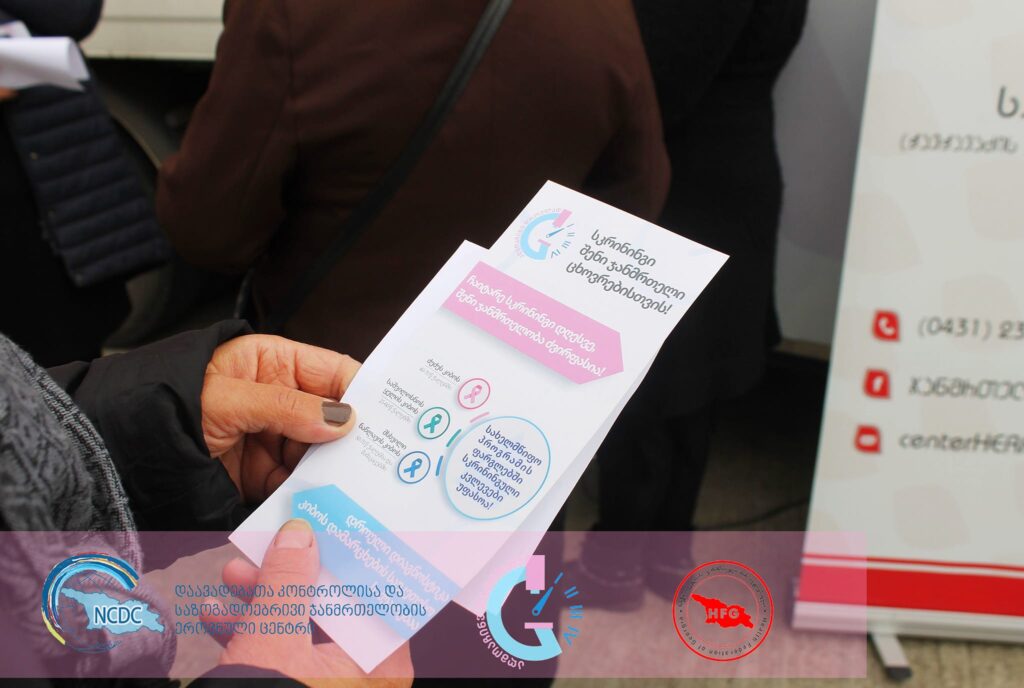 აქციის მონაწილეებს დაურიგდათ დაავადებათა კონტროლისა და საზოგადოებრივი ჯანმრთელობის ეროვნული ცენტრის მიერ შემუშავებული საინფორმაციო მასალა .